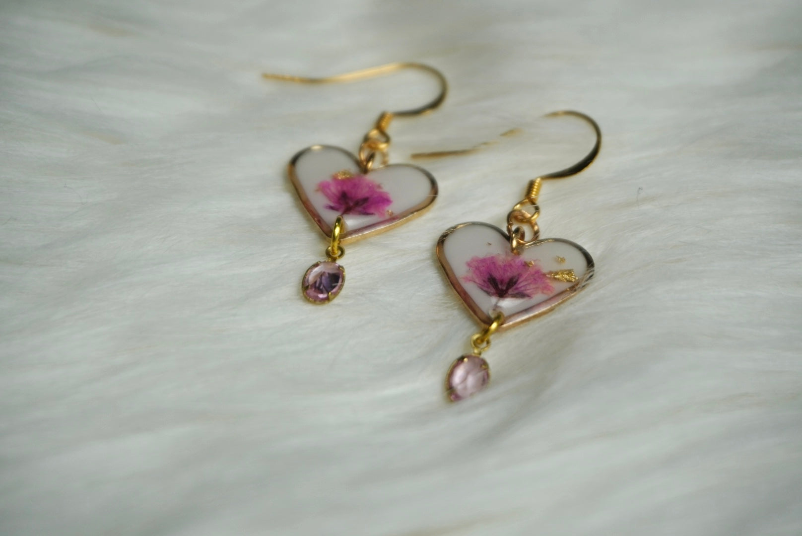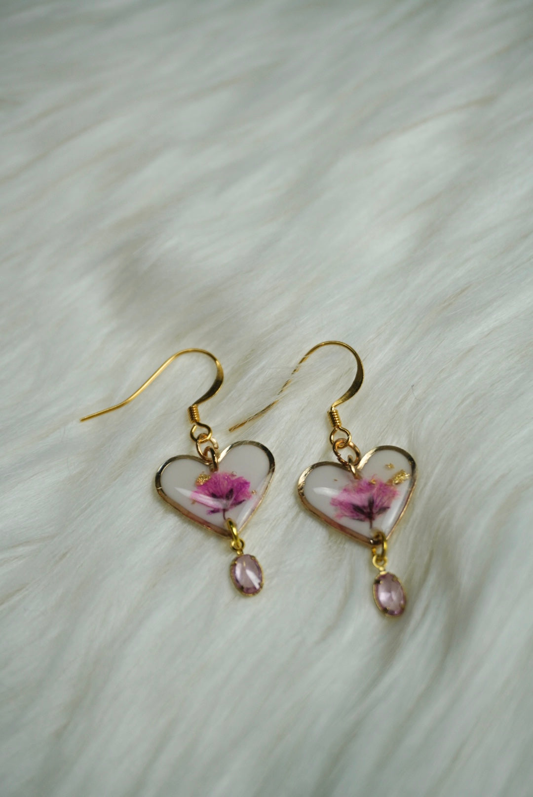 Delicate heart-shaped earrings crafted by hand, each one featuring a charming pink flower nestled in the centre. These thoughtful pieces celebrate love and nature in one beautiful design. Perfect for adding a touch of handmade warmth to your everyday look or gifting to someone special. A gentle reminder that beauty comes in small, meaningful details.