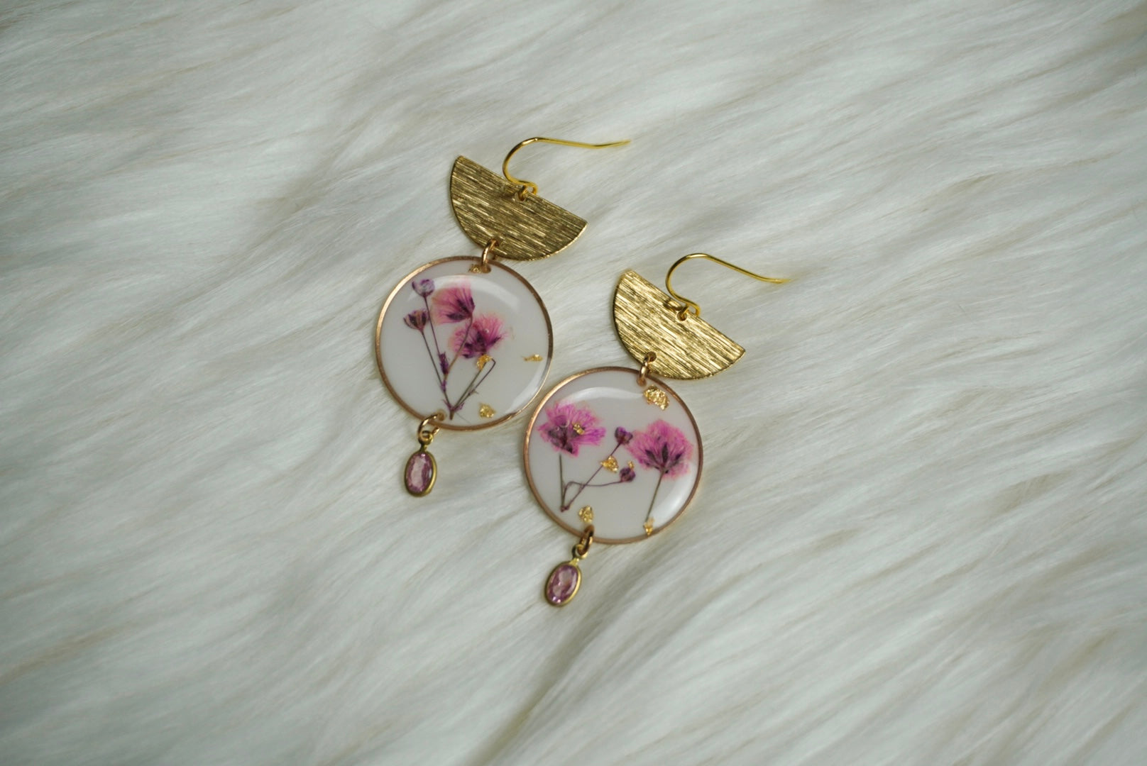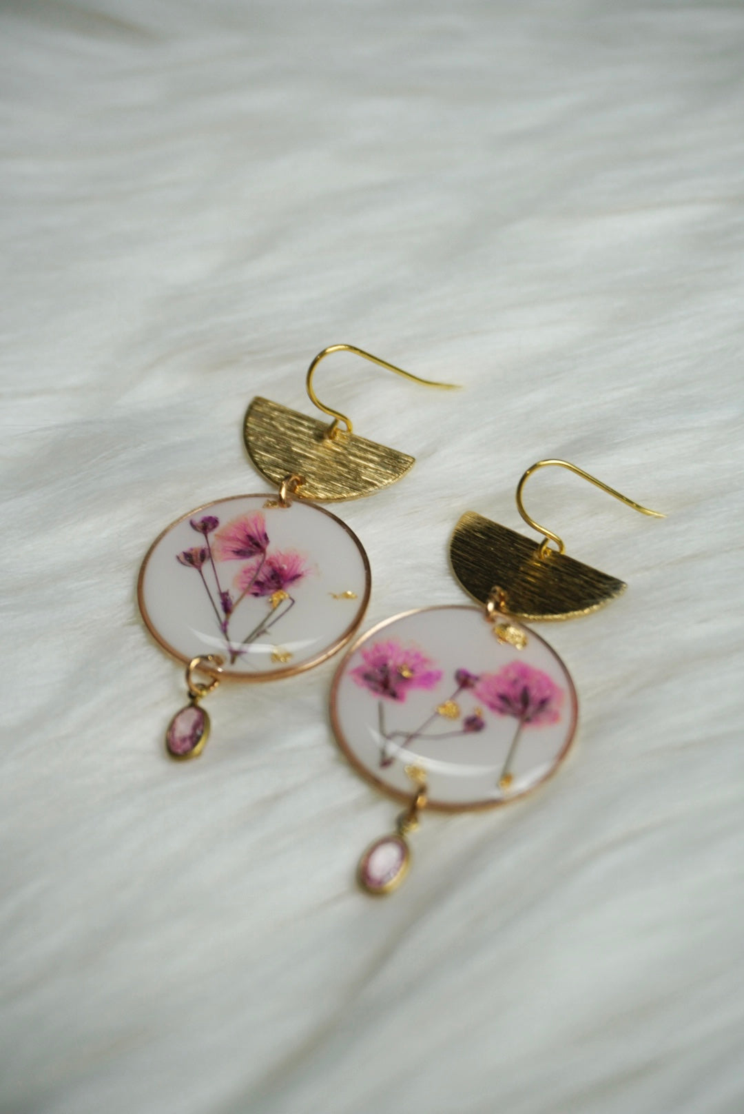 Celebrate nature's delicate beauty with these handmade pressed flower earrings. Each pair features real flowers preserved in resin, creating eye-catching designs that shimmer with an elegant shine. Perfect for adding a touch of botanical charm to any outfit, these unique earrings showcase the artistry of working with natural elements. Whether you're looking for a conversation starter or a meaningful gift, these pressed flower pieces bring a fresh, organic aesthetic to your jewelry collection.