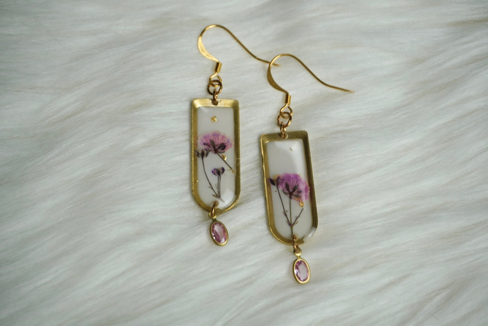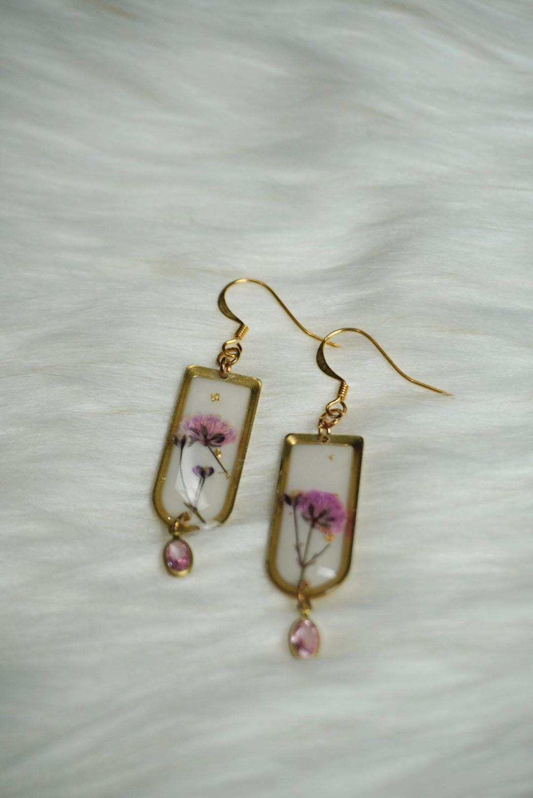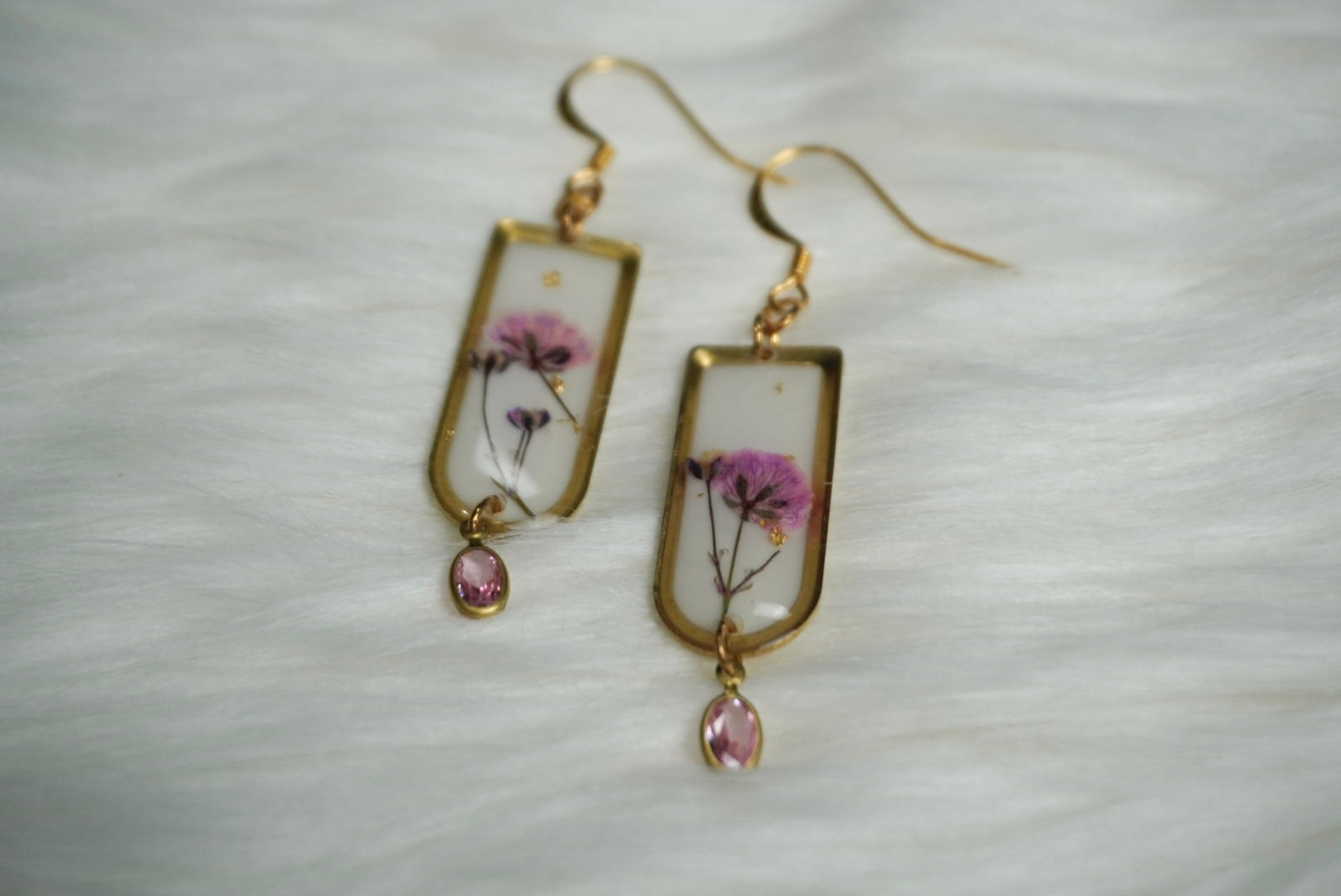 Celebrate nature's delicate beauty with these handmade earrings featuring real pressed flowers sealed in resin. Each pair is uniquely crafted, capturing the vibrant colors and intricate details of botanical specimens. Perfect for nature lovers and those seeking meaningful, eco-conscious jewelry, these earrings add a touch of organic elegance to any look. Lightweight and comfortable for everyday wear, they're a wonderful way to carry a piece of the natural world with you.