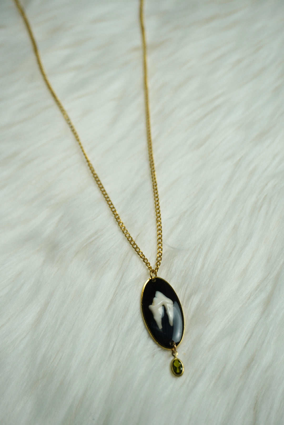 This handcrafted necklace features an authentic foraged natural element suspended from a warm gold-toned chain, creating a distinctive piece that celebrates nature's artistry. Each pendant is uniquely sourced and carefully selected, ensuring no two pieces are identical. The combination of raw, organic materials with refined metalwork produces an understated elegance suitable for everyday wear or special occasions. A meaningful accessory for those who appreciate sustainable craftsmanship and the beauty of the natural world.