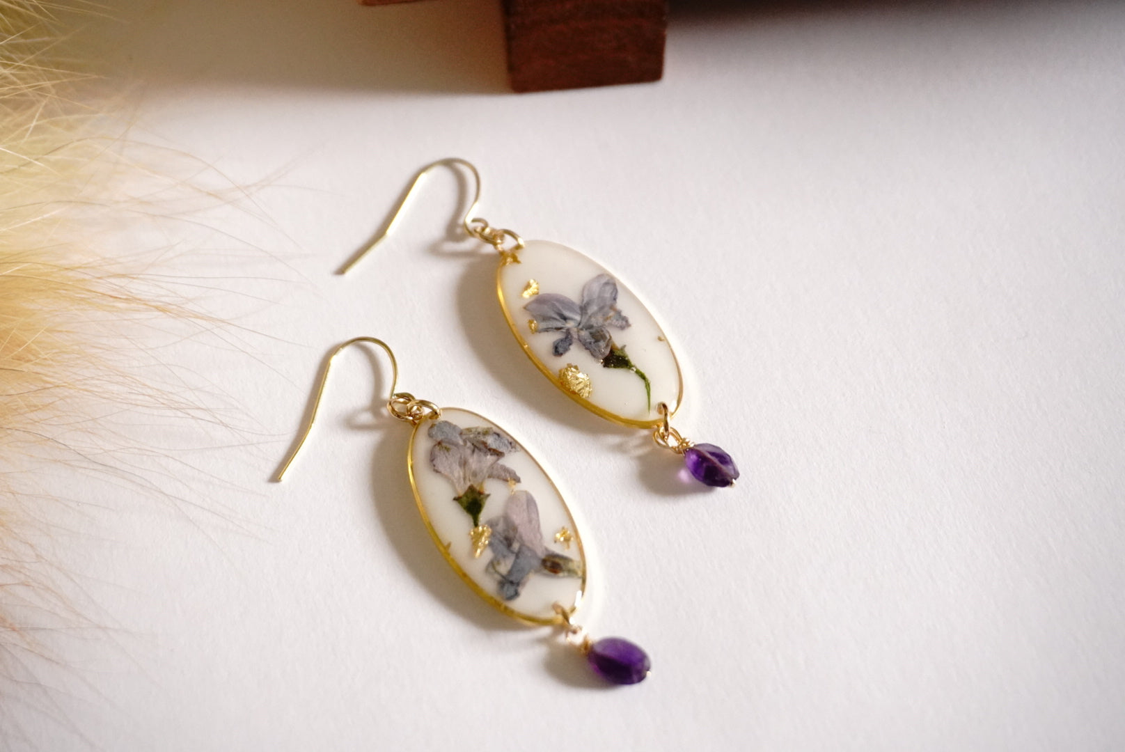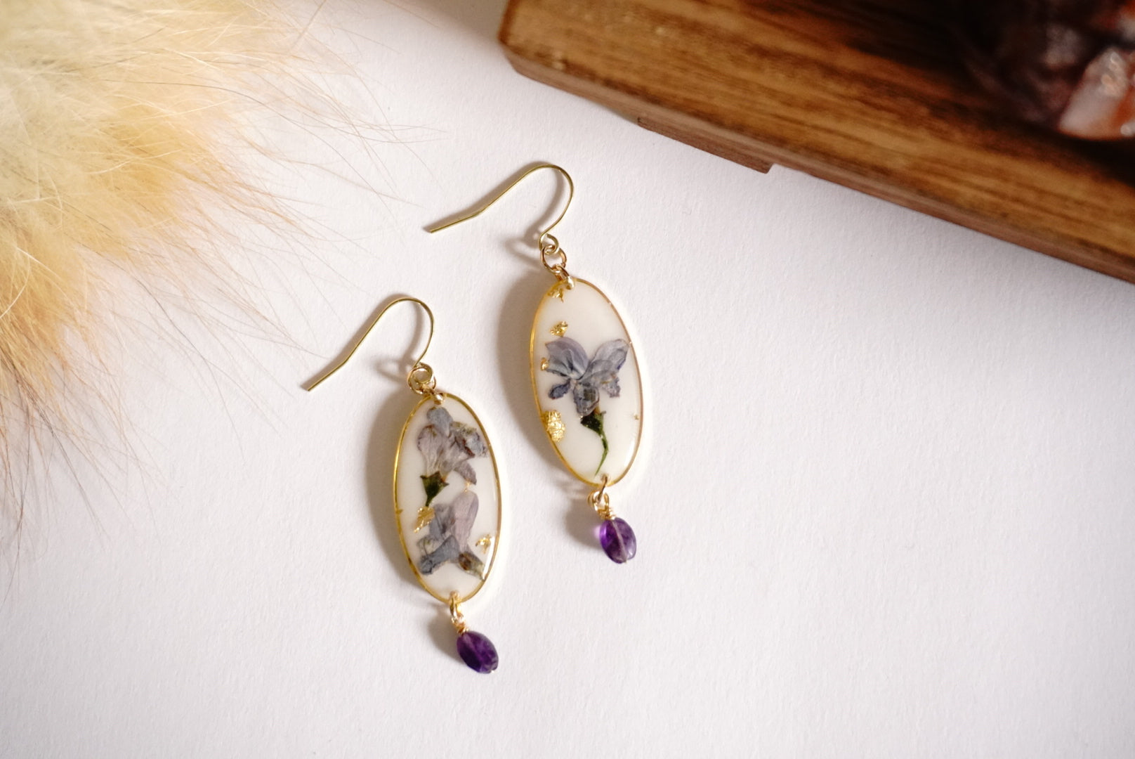Delightfully dainty and oh-so-purple! These handcrafted earrings showcase real pressed lilac flowers paired with twinkling amethyst stones. Each pair captures nature's beauty in a wearable treasure that adds a playful pop of purple to any outfit. Perfect for flower lovers and free spirits alike!