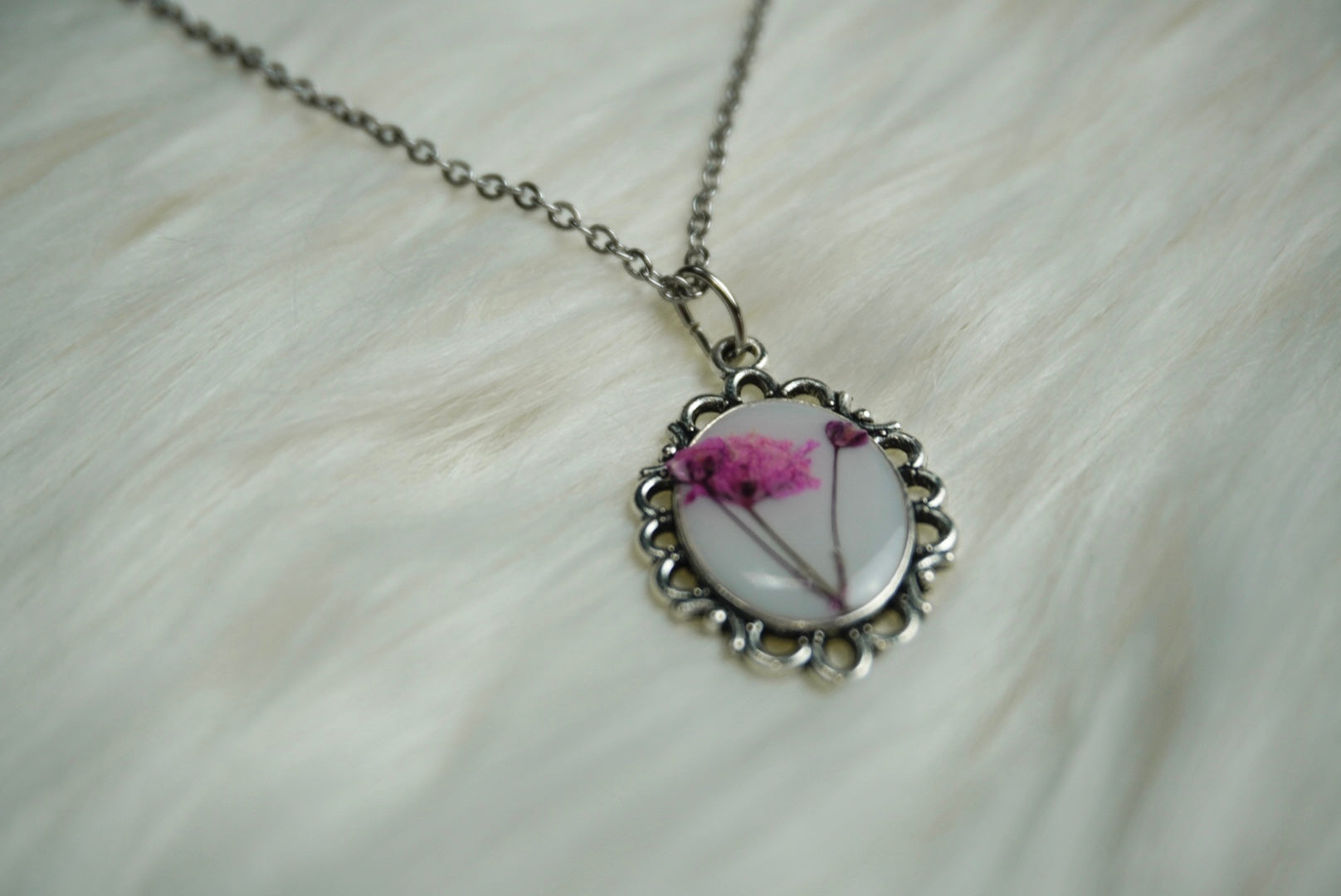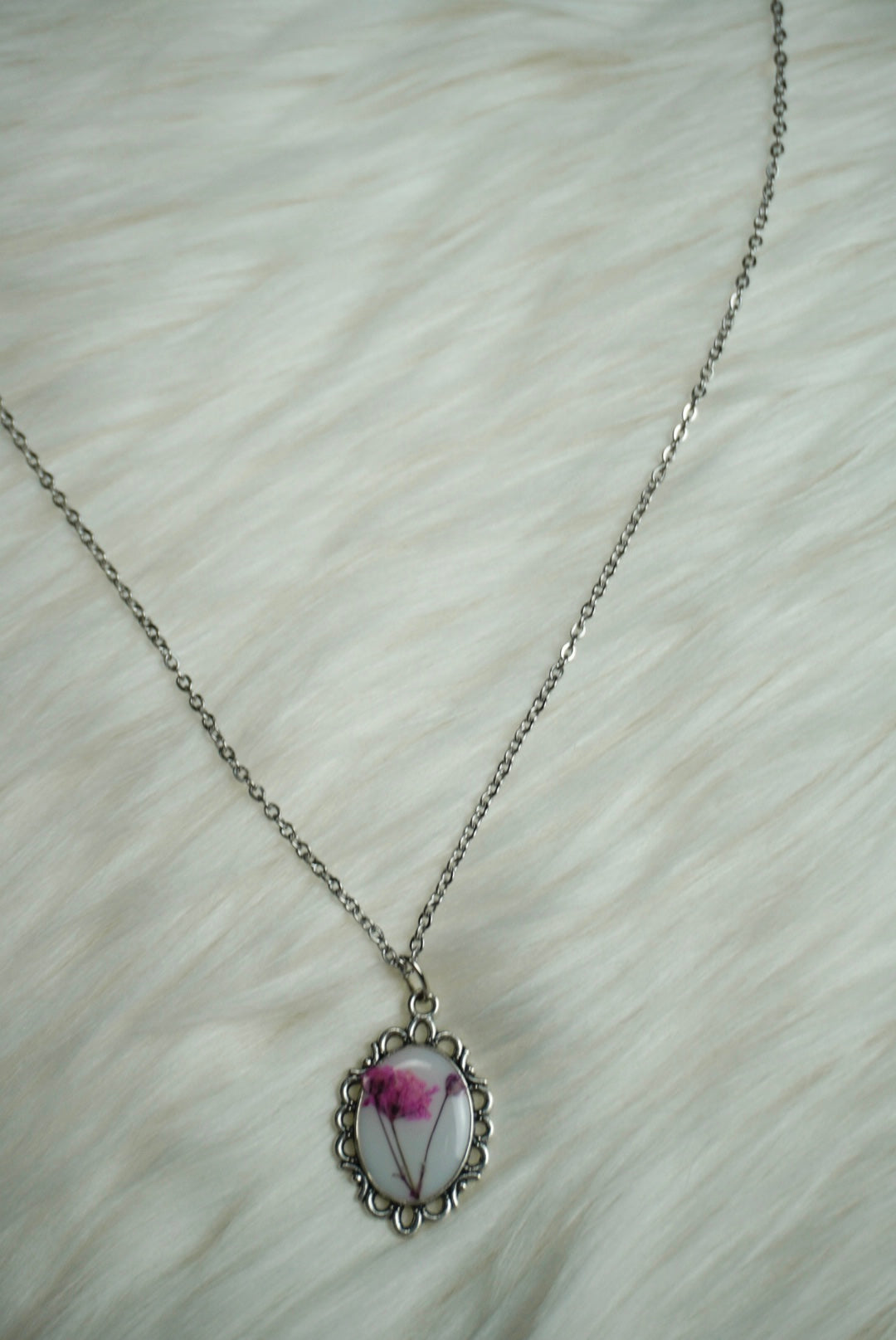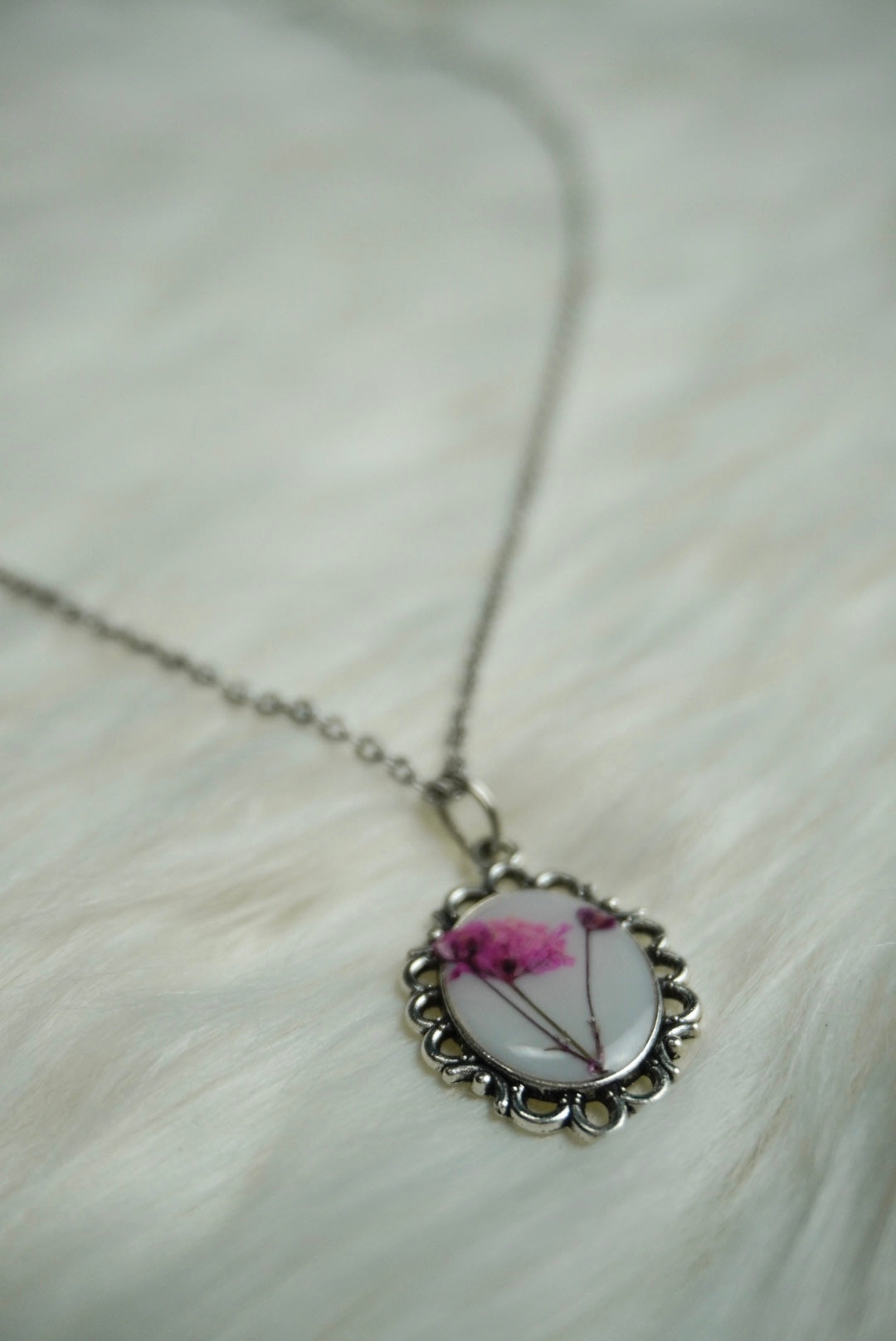 Wear nature's delicate beauty close to your heart with this handmade necklace featuring real pressed flowers encased in a charming pendant. Each piece celebrates the quiet elegance of botanical elements, suspended from a durable stainless steel chain that's built to last. Perfect for nature lovers and those seeking meaningful, one-of-a-kind jewelry that tells a story. A gentle reminder that even the smallest natural treasures deserve to be cherished.