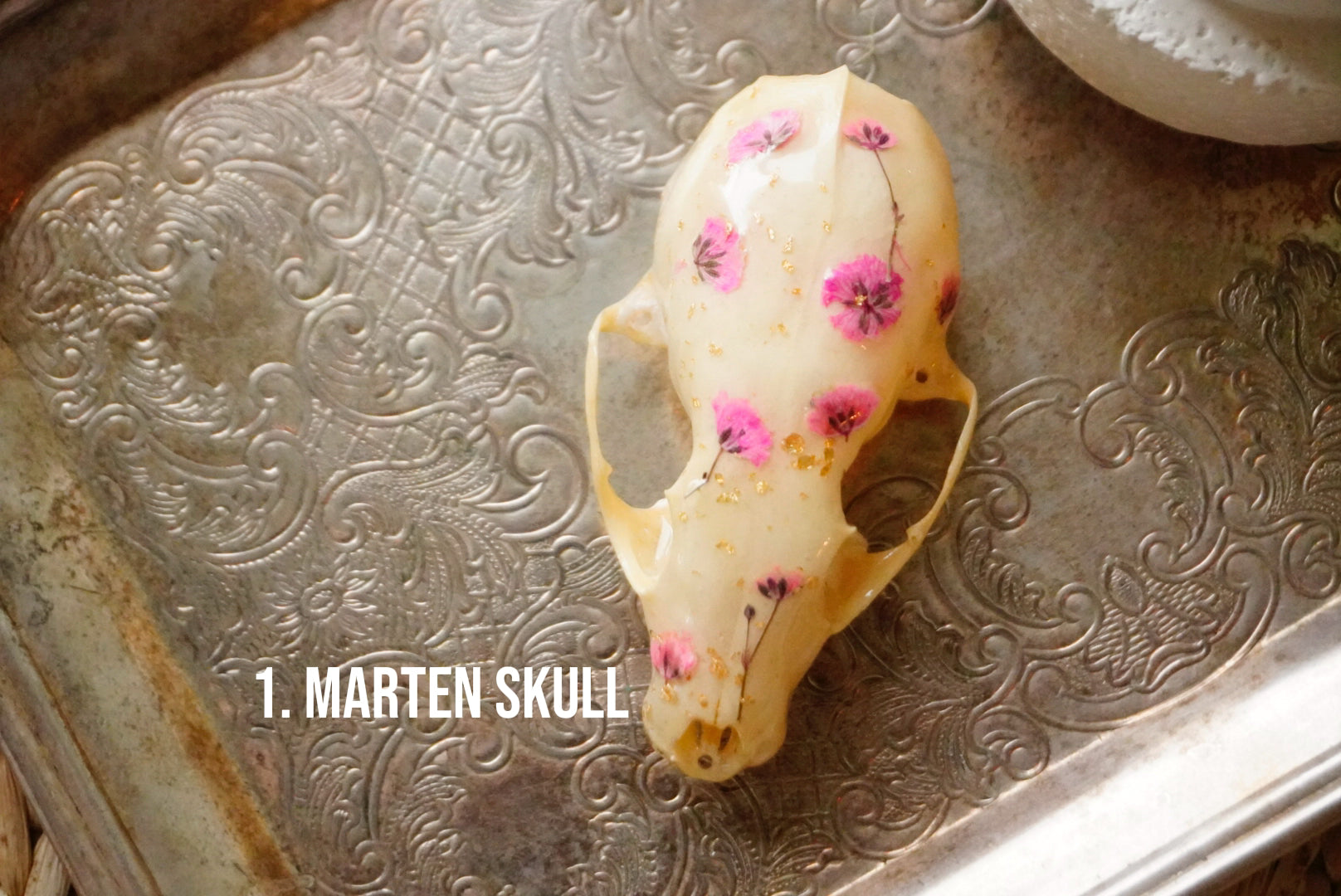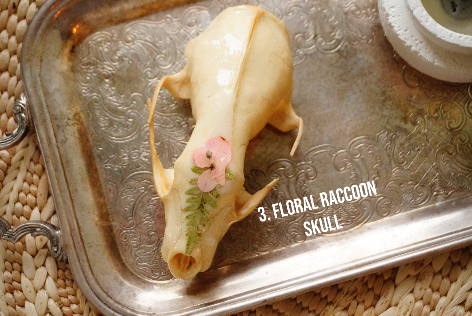 Each piece of jewelry, every skull I work with and everything I create comes from a beautiful passion I hold. I believe that everything deserves to be honoured and romanticized. I handpick all the botanicals and natural elements within my work. All the animals remains are sourced within Canada from only ethical, sustainable hunters and trappers.